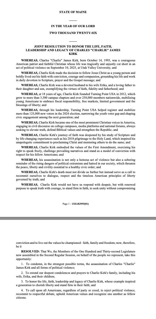 Other speculation about Paul’s future involves her auditioning to work for a group like Turning Point USA. That’s why, some wags hypothesized, Paul introduced legislation last month — which was approved without a vote because Maine Dems worried opposing the measure would make them look bad — “JOINT RESOLUTION TO HONOR THE LIFE, FAITH, LEADERSHIP AND LEGACY OF CHARLES “CHARLIE” JAMES KIRK.”