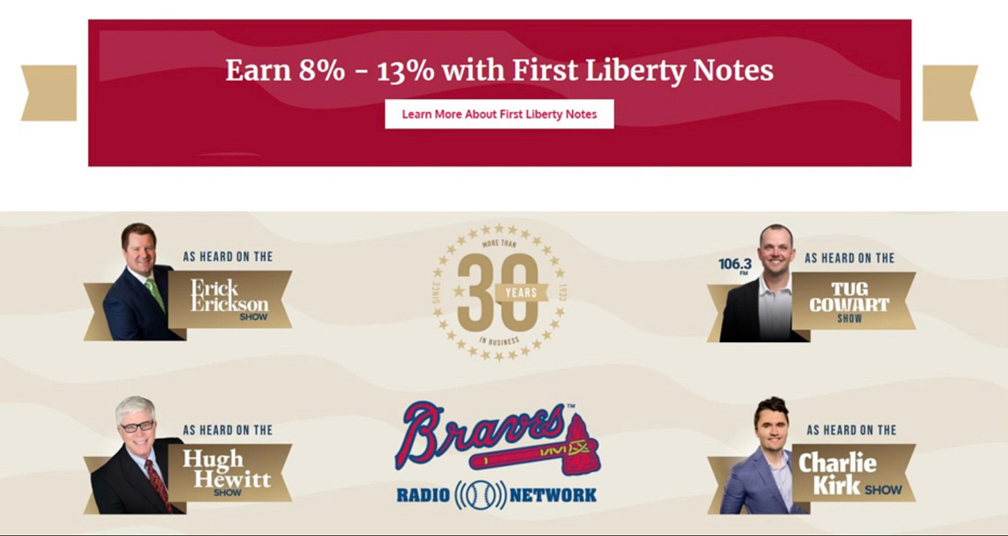 Libby and Titcomb still haven’t returned the $57,000 stolen from “patriot” investors. As I explained in this Crash Report, the pair’s various PACs and campaigns benefitted from the largesse of Brant Frost IV’s “First Liberty Building & Loan” Ponzi scheme that targeted customers who listened to the Charlie Kirk Show and other MAGA podcasts.