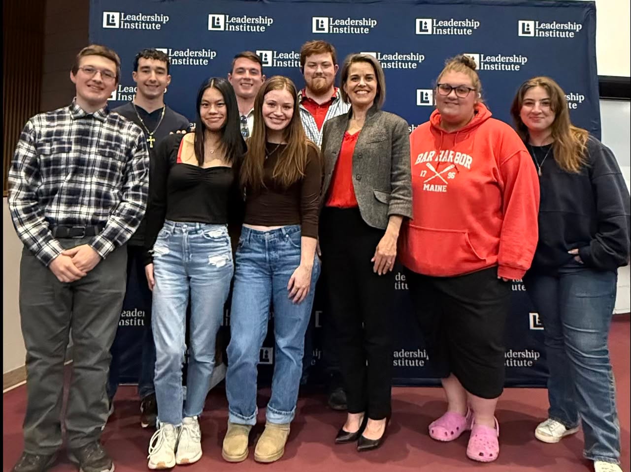 The soon-to-be ex-state rep was on the Orono campus on behalf of the “Leadership Institute” to address eight Black Bears. (Video and photo from Libby’s socials.)
