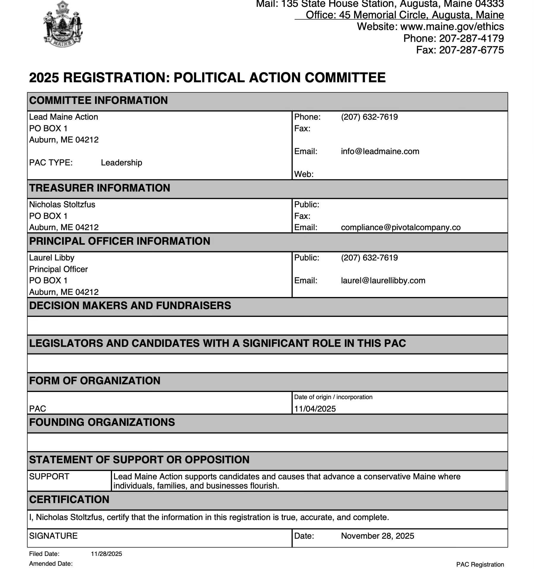 Laurel Libby officially registered her “Lead Maine Action” PAC on Black Friday. Longtime sidekick not involved.