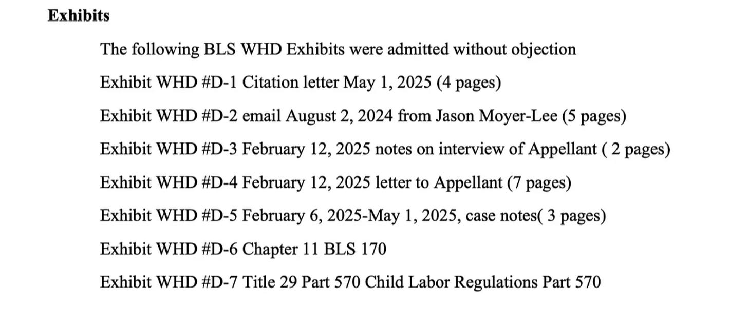 I reached out to the Department of Labor in Aug. 2024 with a tip about the underage worker and other possible violations. And never heard back. Below is my email explaining the situation.