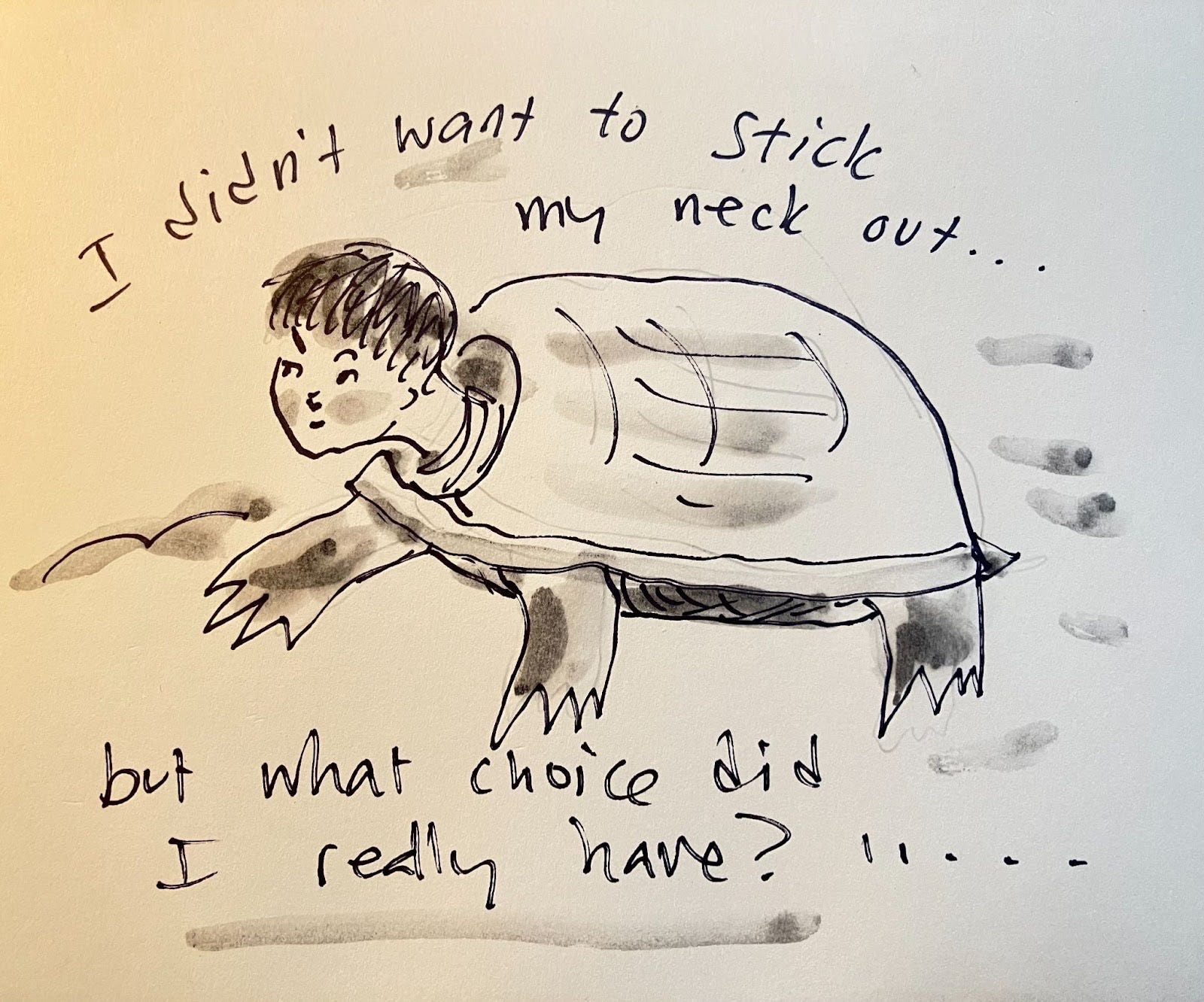 After four and a half months in that hotel, we move out to Turtle Cove Villas, into expat housing. It is a part of Hong Kong that manages, at the time, to be remote. The little cove at the foot of our mountain is the turtle’s head; its body merges with the vast South China Sea. Turtles seem to be following me. They want me to be slow and steady, perhaps, but I just want to pull my head into my shell and think.