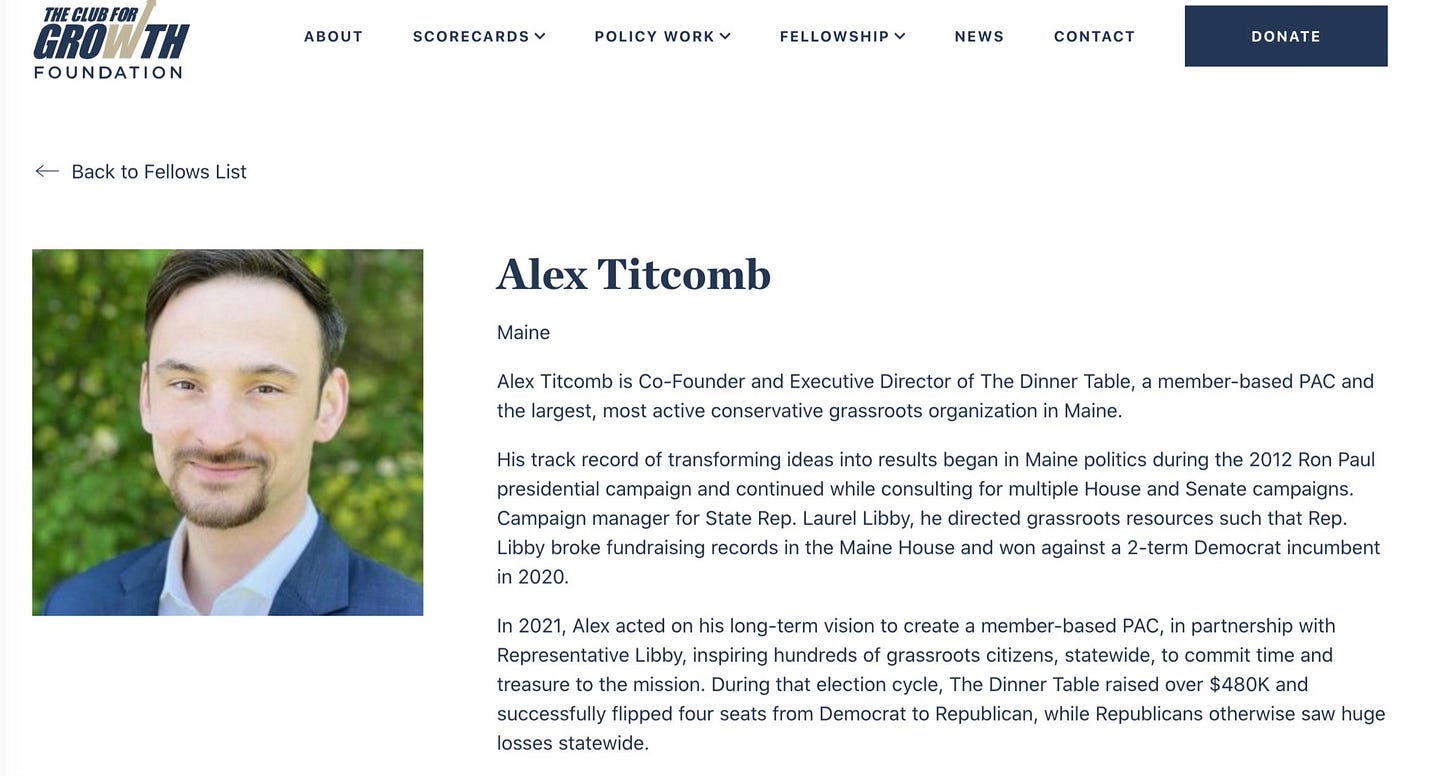 And their endeavors haven’t gone unnoticed. Just last month, for instance, the pair were honored for their efforts by “Club For Growth Foundation.” Libby was presented with the 2025 “Courage Under Fire” award during a gala at the Club’s “Fall Seminar & Alumni Reunion” in Washington, D.C. At the same event, Titcomb was awarded the Club’s “Fellow of the Year” for his work with Dinner Table Action to reduce voting access and other electoral goals of the Christo-Fash movement.