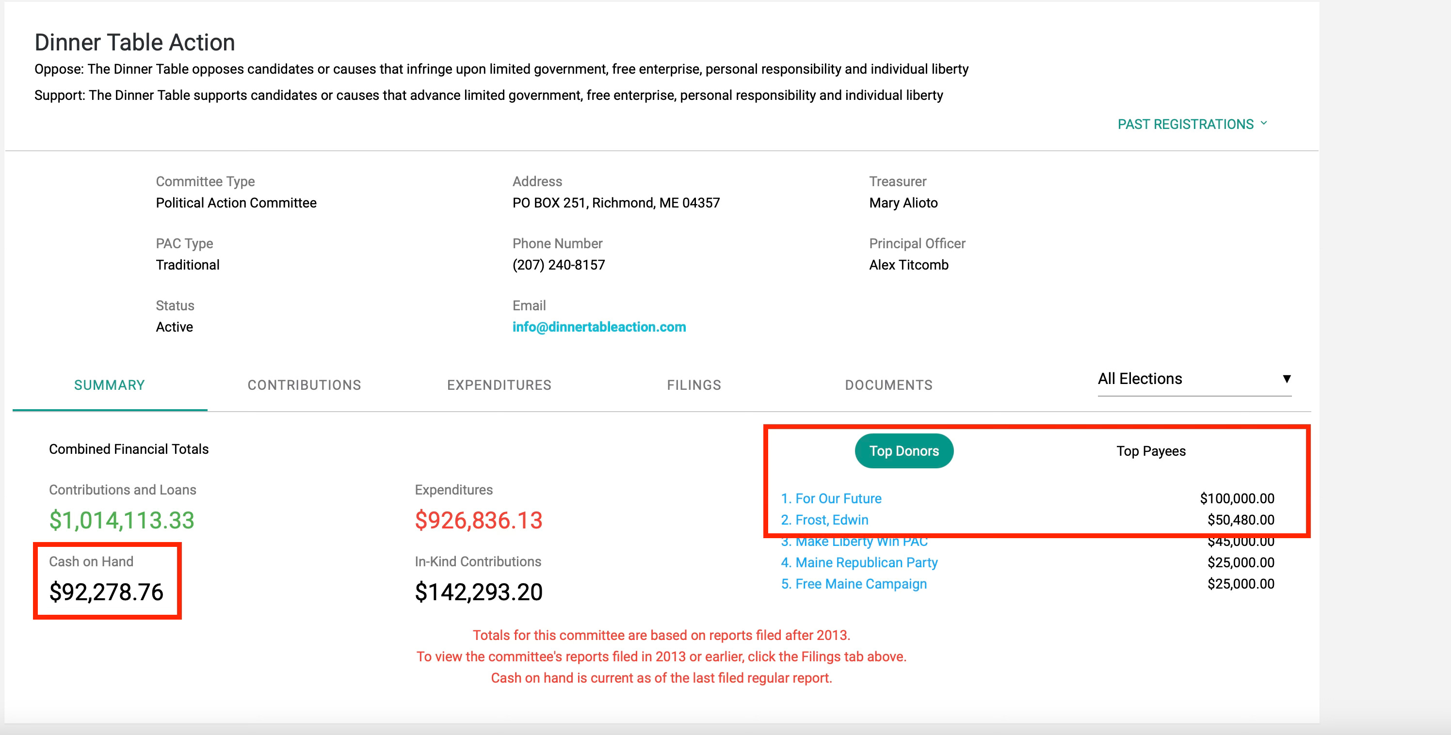 A week later, Brakey’s PAC gave $25,000 to Titcomb and Libby’s Dinner Table Action PAC.
