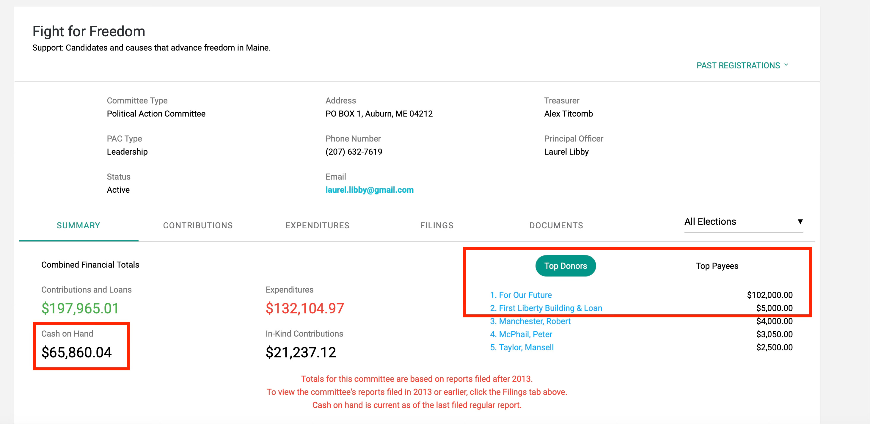 Consider Libby’s political monies. Like the aforementioned cumulative $2.4 million Libby has raised for her campaign and her PACs in Maine. Foremost, until she apparently quit in late July, was Dinner Table Action, which raised over a million bucks since 2022.