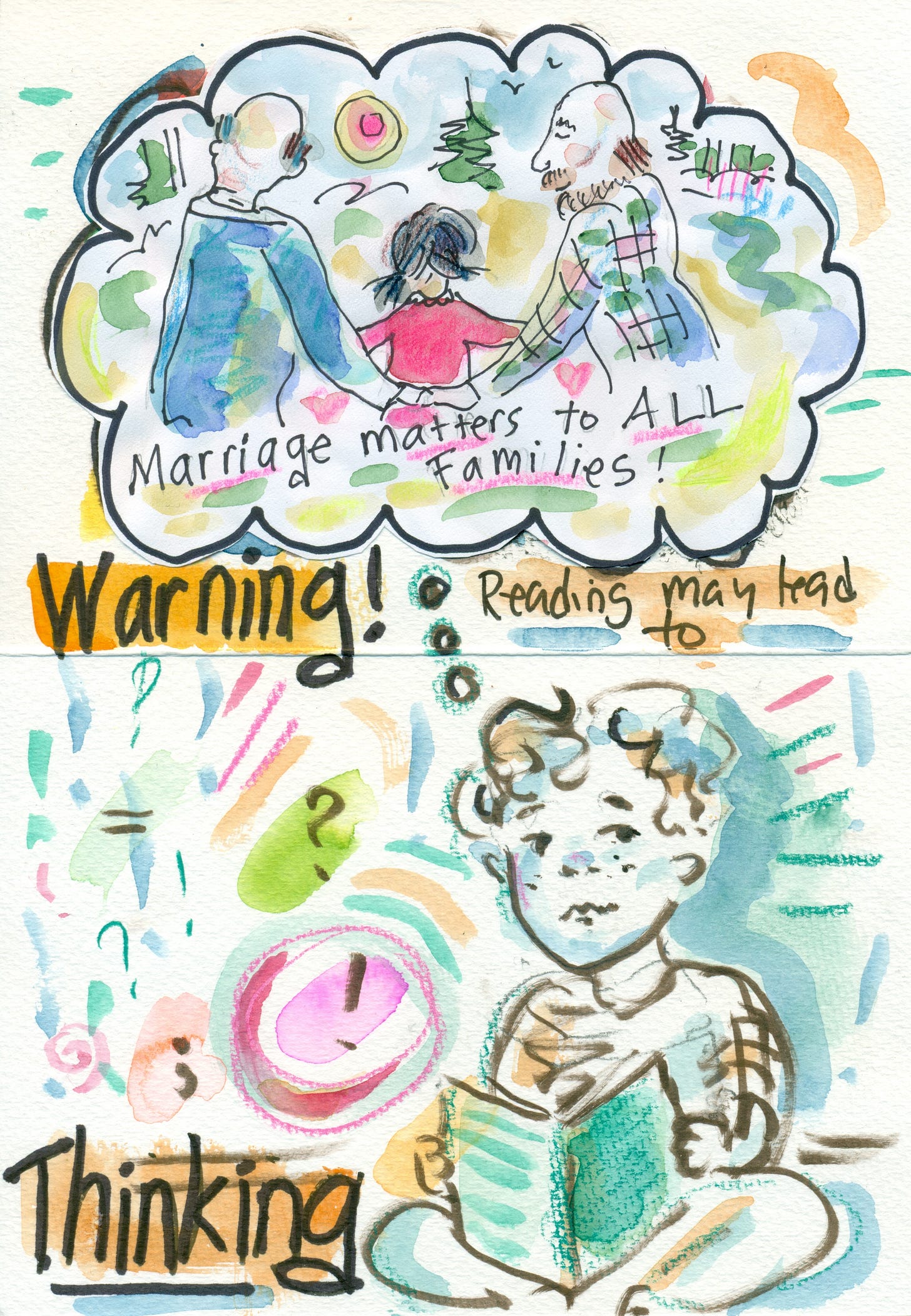 Here’s to fighting book bans. Here’s to talking to kids about this stuff. Any stuff. And, especially, listening to what they have to say. Here’s to an informed citizenry. Reading is thinking.
