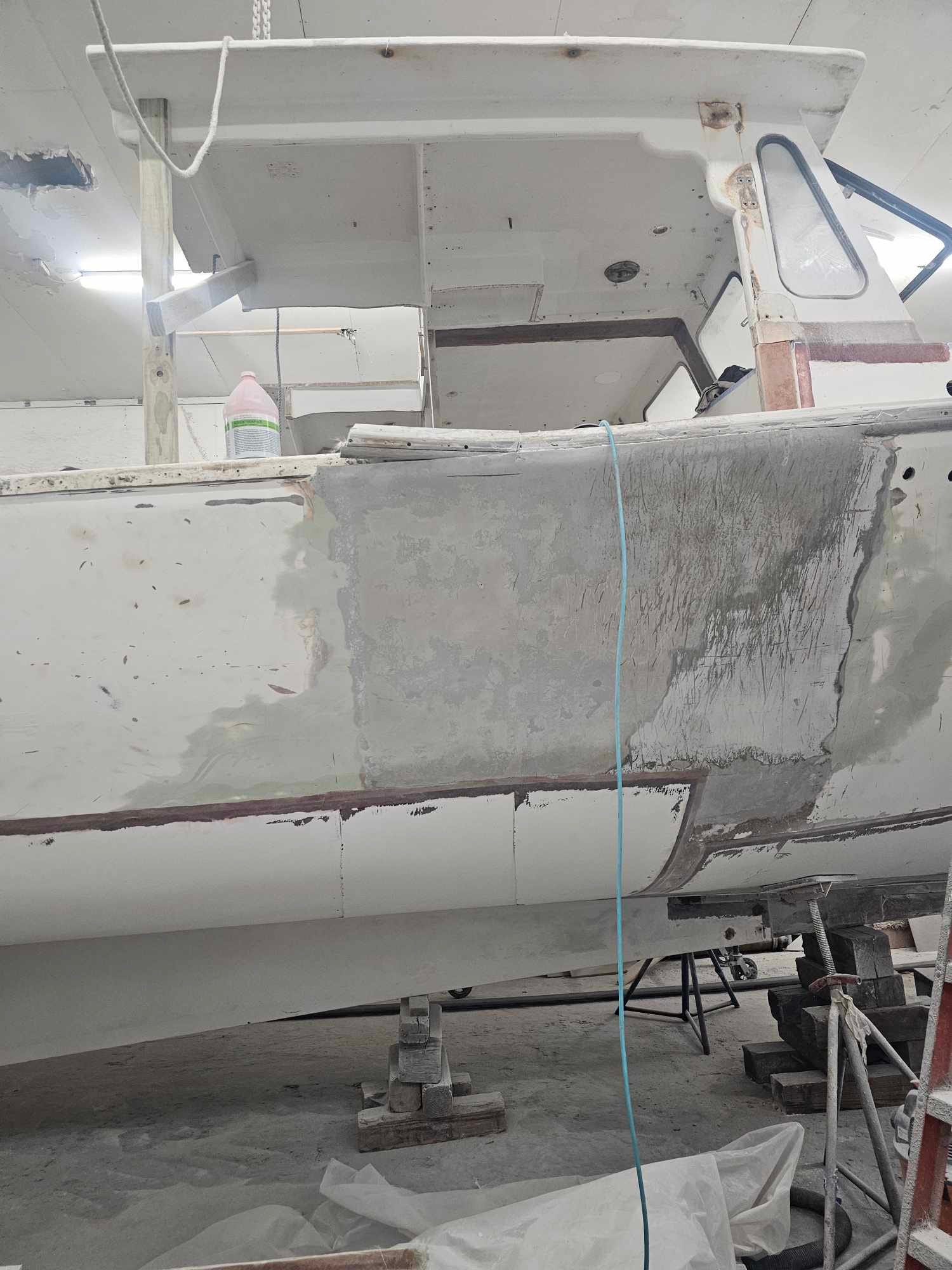 And here are some photos of the 51 — exclusive to the Crash Report — from July, showing her slow progress. The new cabin roof was a salvage job from another vessel. That big gaping hole the in roof, btw, will be fixed once they get the engine installed.