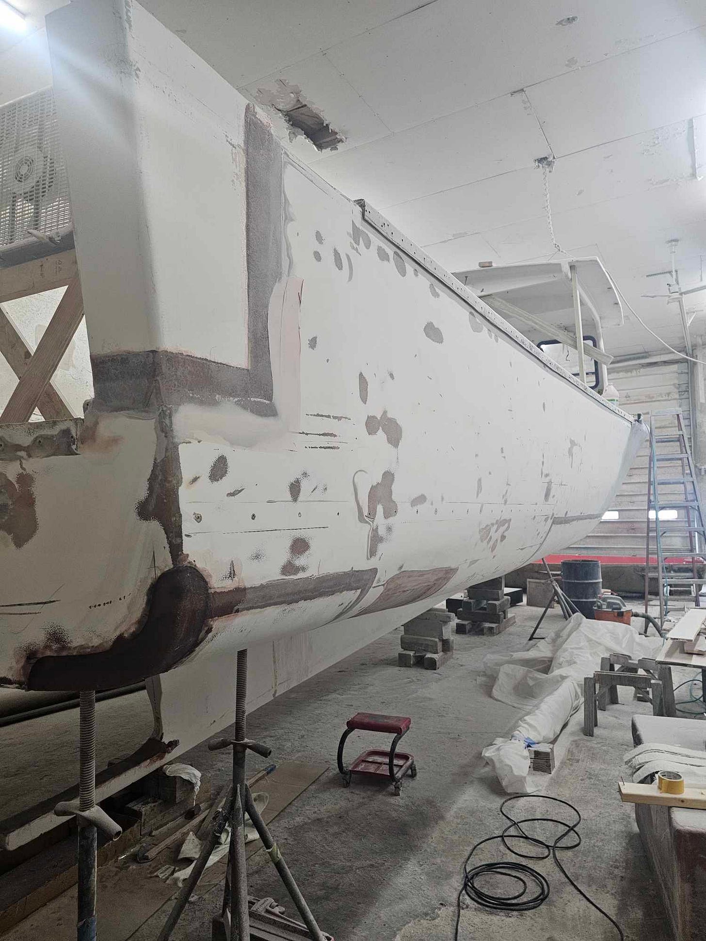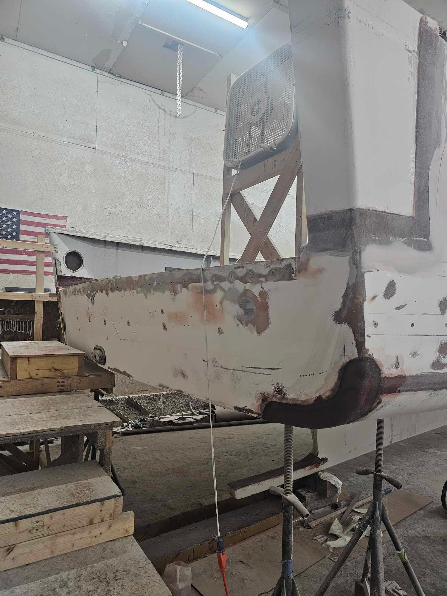 “It is a crazy rebuild,” Moores told me back in April. “But I’m saving him money by not building him a new hull.”