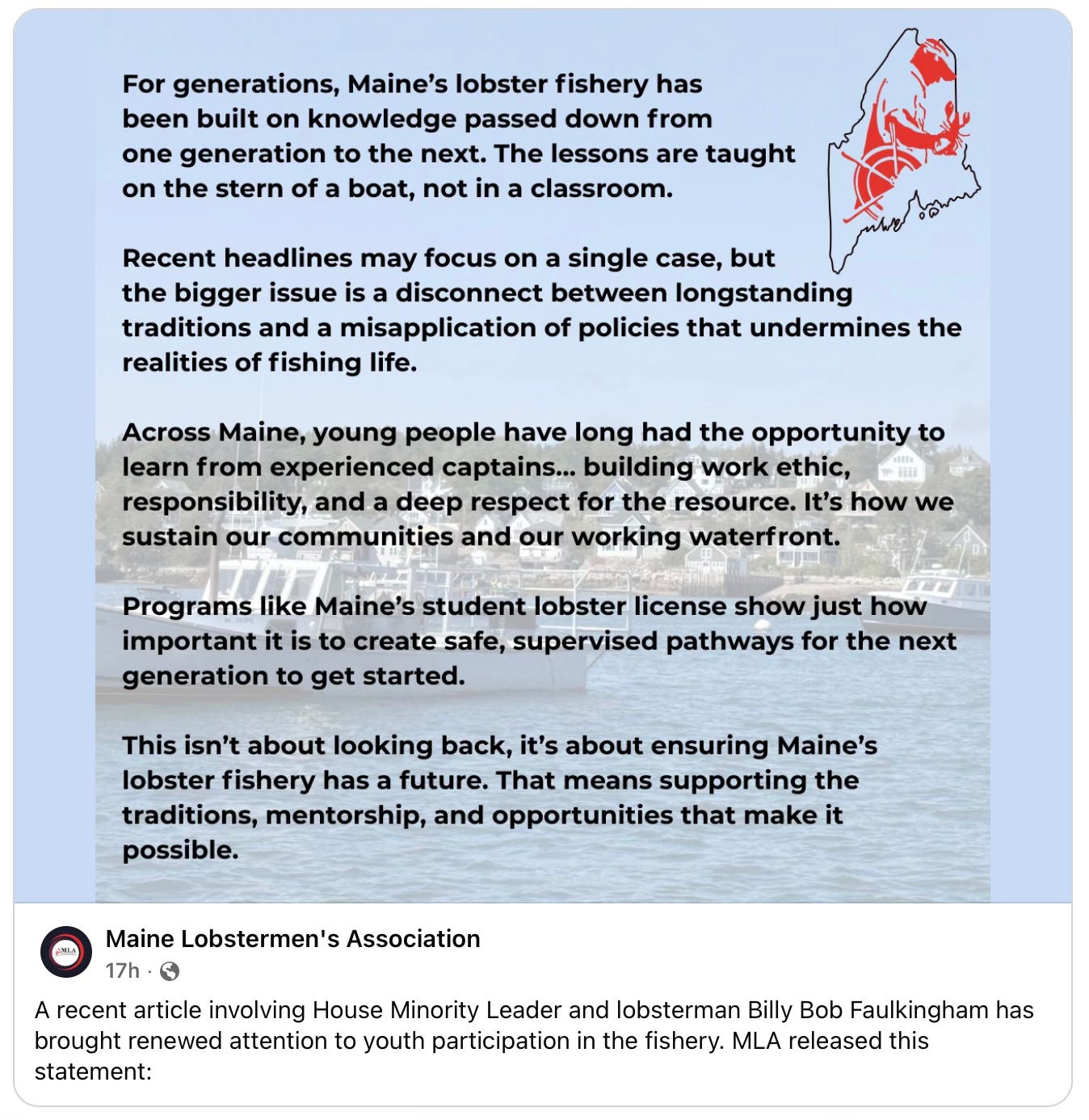 Crickets, from industry leaders, though, until I wrote about the state rep from Winter Harbor on Saturday. And I agree wholeheartedly with the below statement by the Maine Lobstermen’s Association.