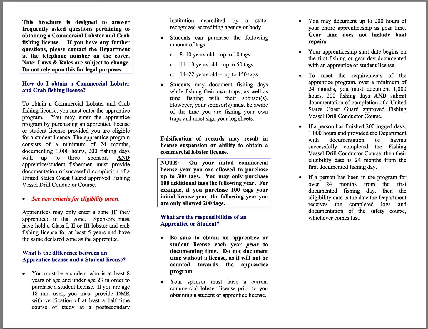 Anyways, it’s weird that people are acting like the issues with labor and lobstering are new. It’s been known for a long time that Maine’s apprenticeship program violates federal child labor laws. Which begs the question: why hadn’t industry leaders like Faulkingham addressed these problems before now. Or, at least, started to work towards fixing ‘em especially after Faulkingham got caught with a sternman who wasn’t licensed or in the apprenticeship, back in 2024.