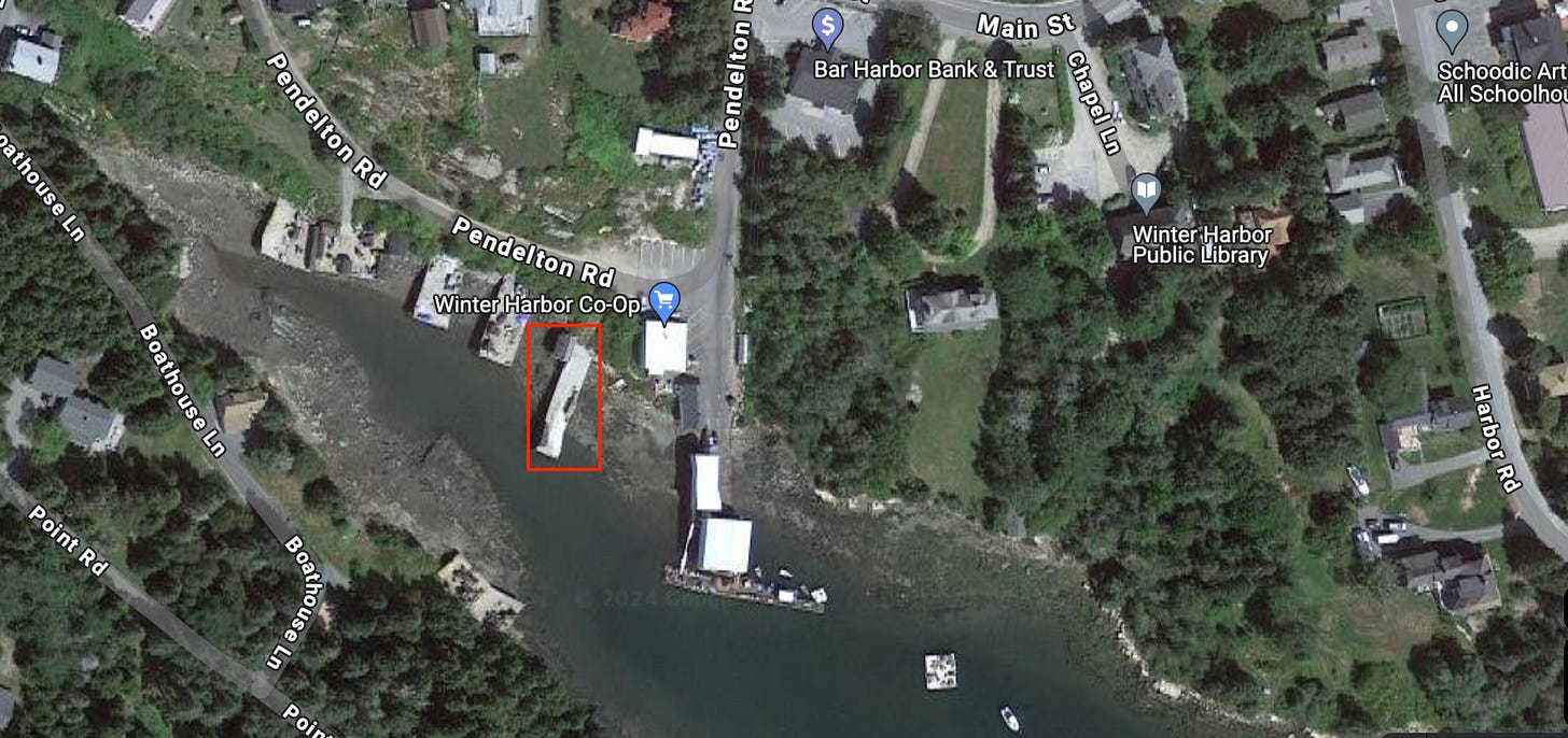 Faulkingham bought the spot in 2019 for $155,000 after the Winter Harbor Lobster Co-op declined to buy it, due the high price, the dock’s crumbling condition and the lack of vehicular access. “I can’t imagine that wharf would survey for over $100k,” one fisherman told me.